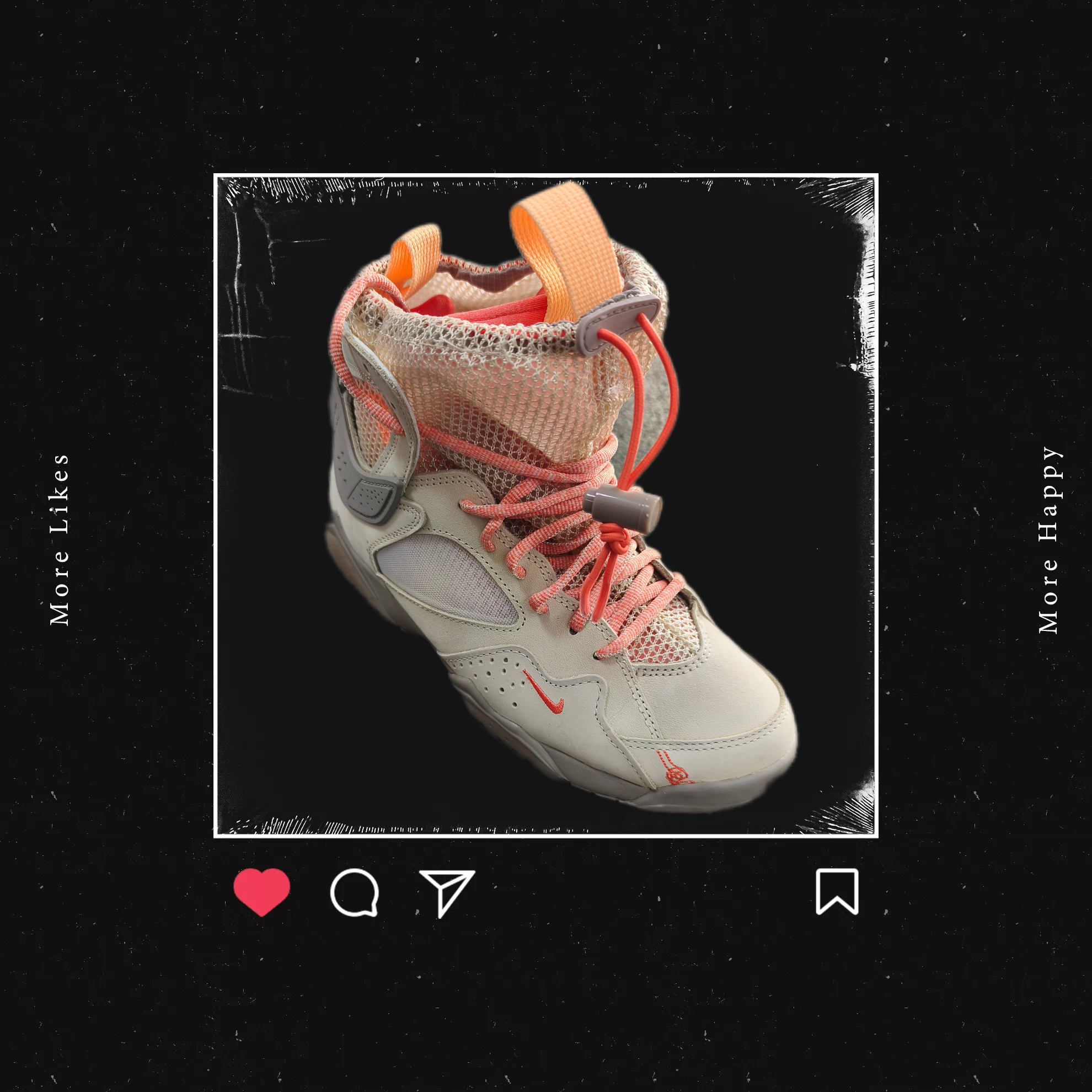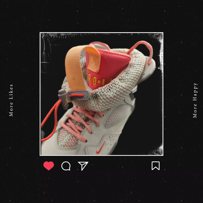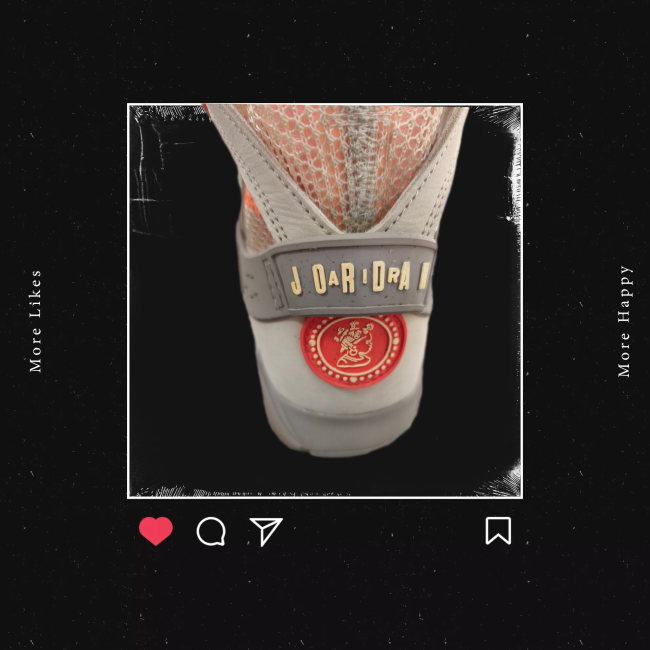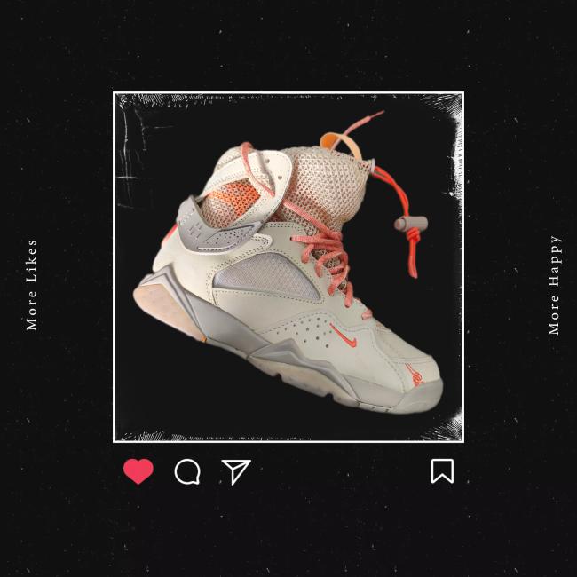 Revisitée par la marque Streetwear féminine,la Jordan 7 se pare pour l'occasion d'un coloris beige/saumon capable de se fondre dans un outfit,integrant un chausson Huarache pour le confort,et rehaussée d'un filet terminant par un lacelock ,lui conférant un côté "bottine"agrémentant une tenue féminine.